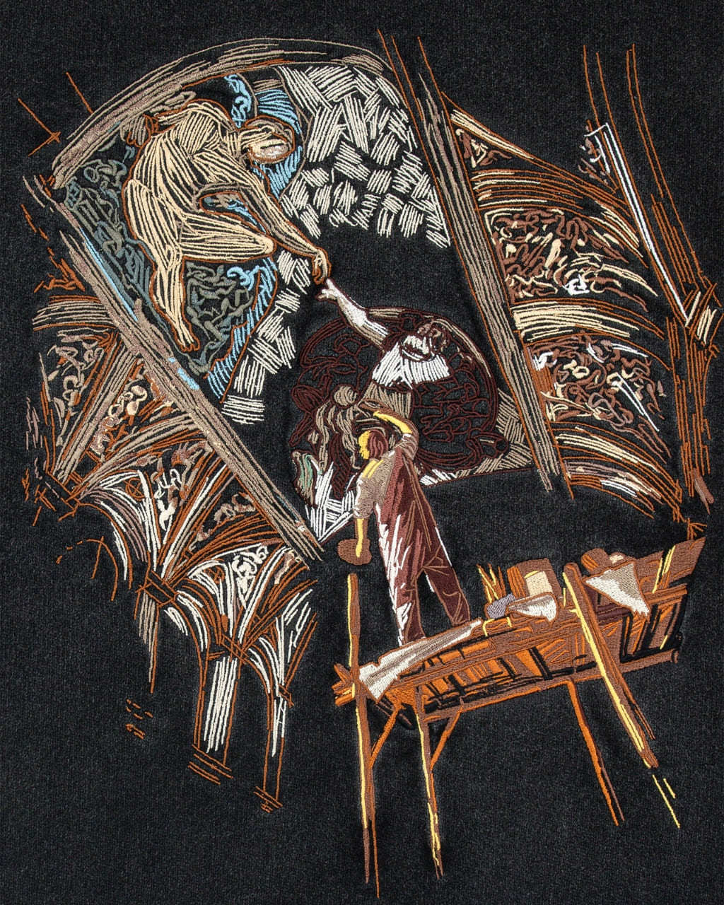 Fully Embroidered Logos (300,000+ stitches)'Michelangelo Painting Sistine Chapel' Artwork
